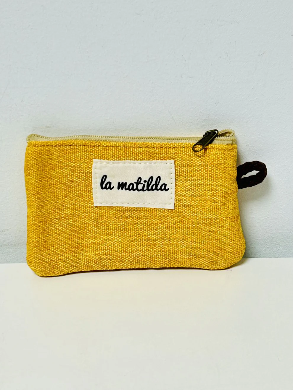 Cartera de tela con forro interior y cierre de cremallera